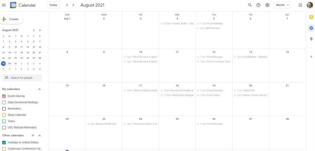 This is the backbone of how I connect tothe outside world whether it be virtually or in-person. Using Google Calendar can set remidners, locations, links, etc. and it the backbone of knowing whether or not I have another committment. It also be linked up with other tools such as Outlook so I can see with my work calendar if I have a conflicting event and if one needs to be changed, schedule its priority.