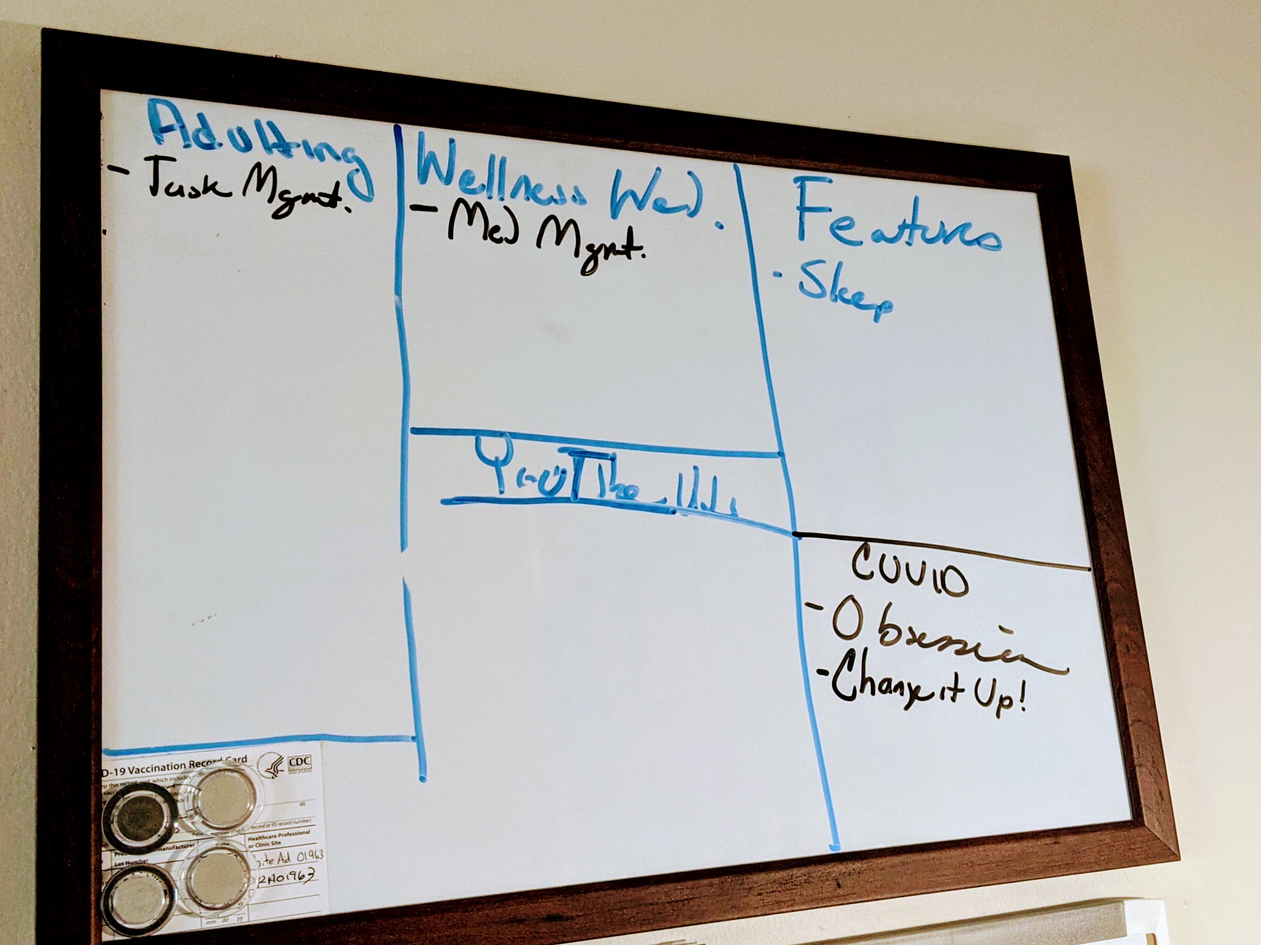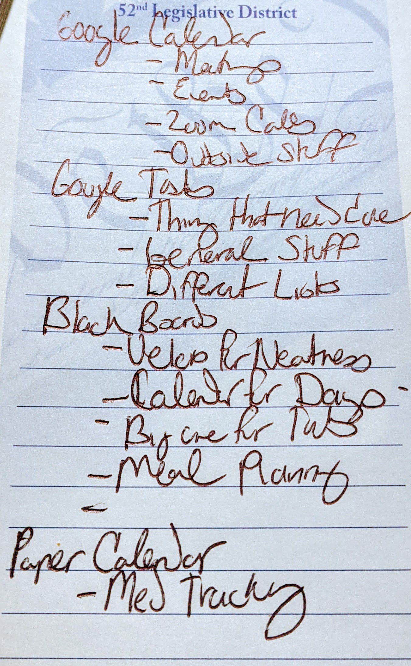Similar to its markerboard counterpart. This is a way to make track of more important things like those therapy sessions and doctor’s appointments if you need to see them without a device. Having a device, I use my calendar to trackdown what time of day I take my medications as I struggle with that because I have to know when I am in leeway for it to have its best effect.