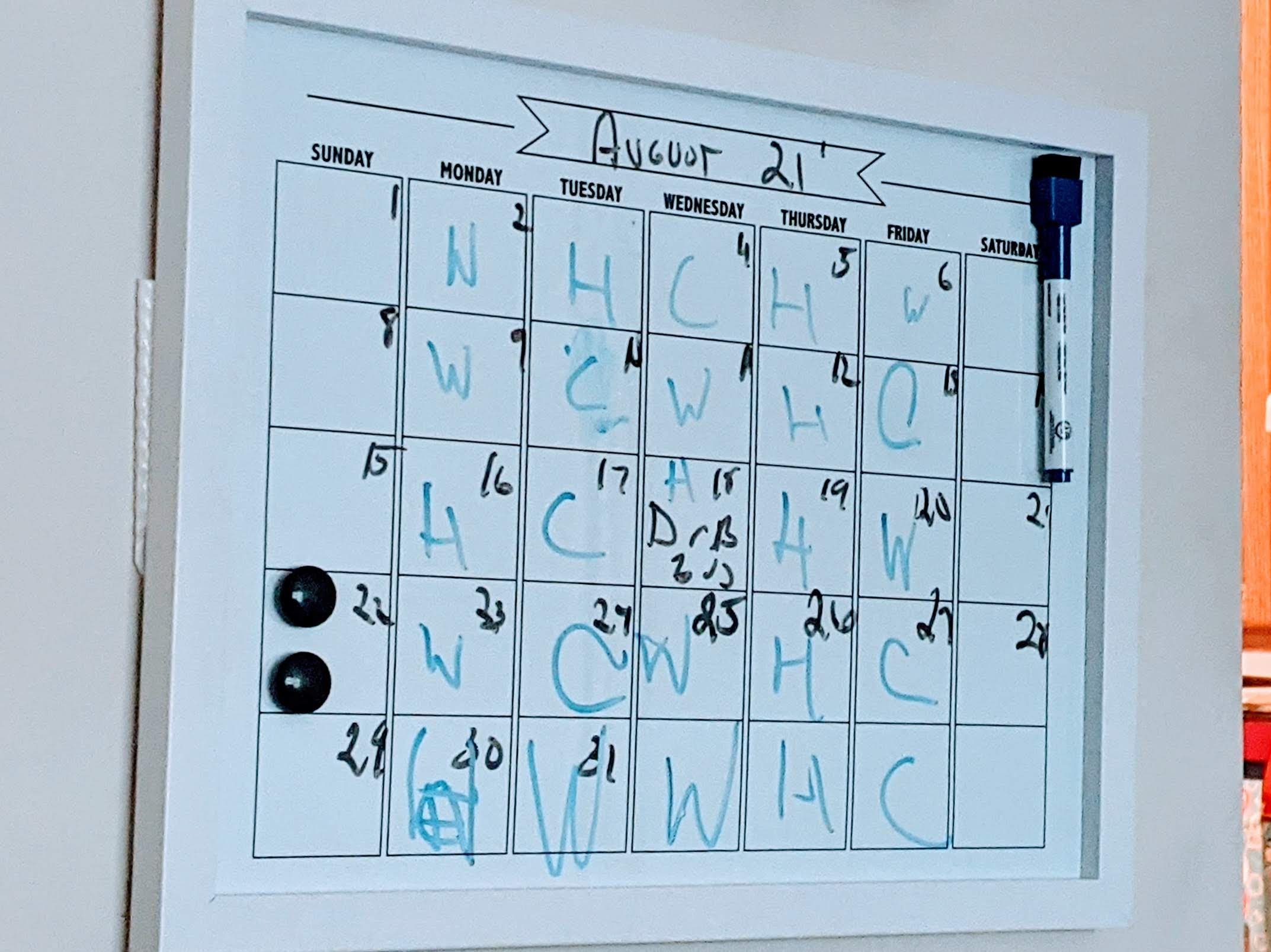 .A recent markerboard favorite is that I learned from another blogger is that with one of those you can find at the Five Below and that is in this everchanging world where you are going for the day. This is good also for those in school because many schools have cycle system,s that can mean that certain classes or things are on certain days of the week or some just have certain things on certain days. We cant rule out those days where we have doctor’s appoimntments also.