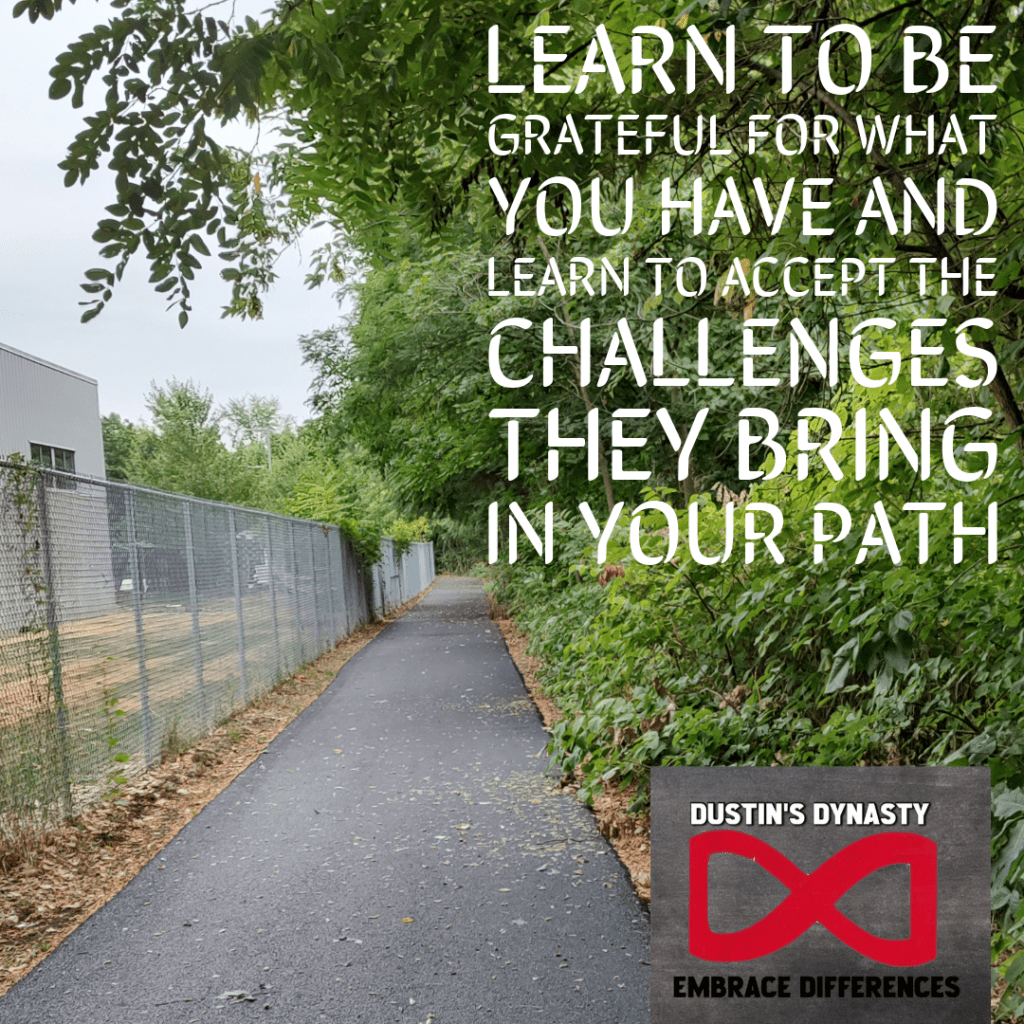 “Learn to be grateful for what you have and learn to accept the challenges they bring in your path”