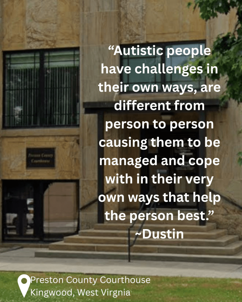 “Autistic people have challenges in their own ways, are different from person to person causing them to be managed and cope with in their very own ways that help the person best.!”